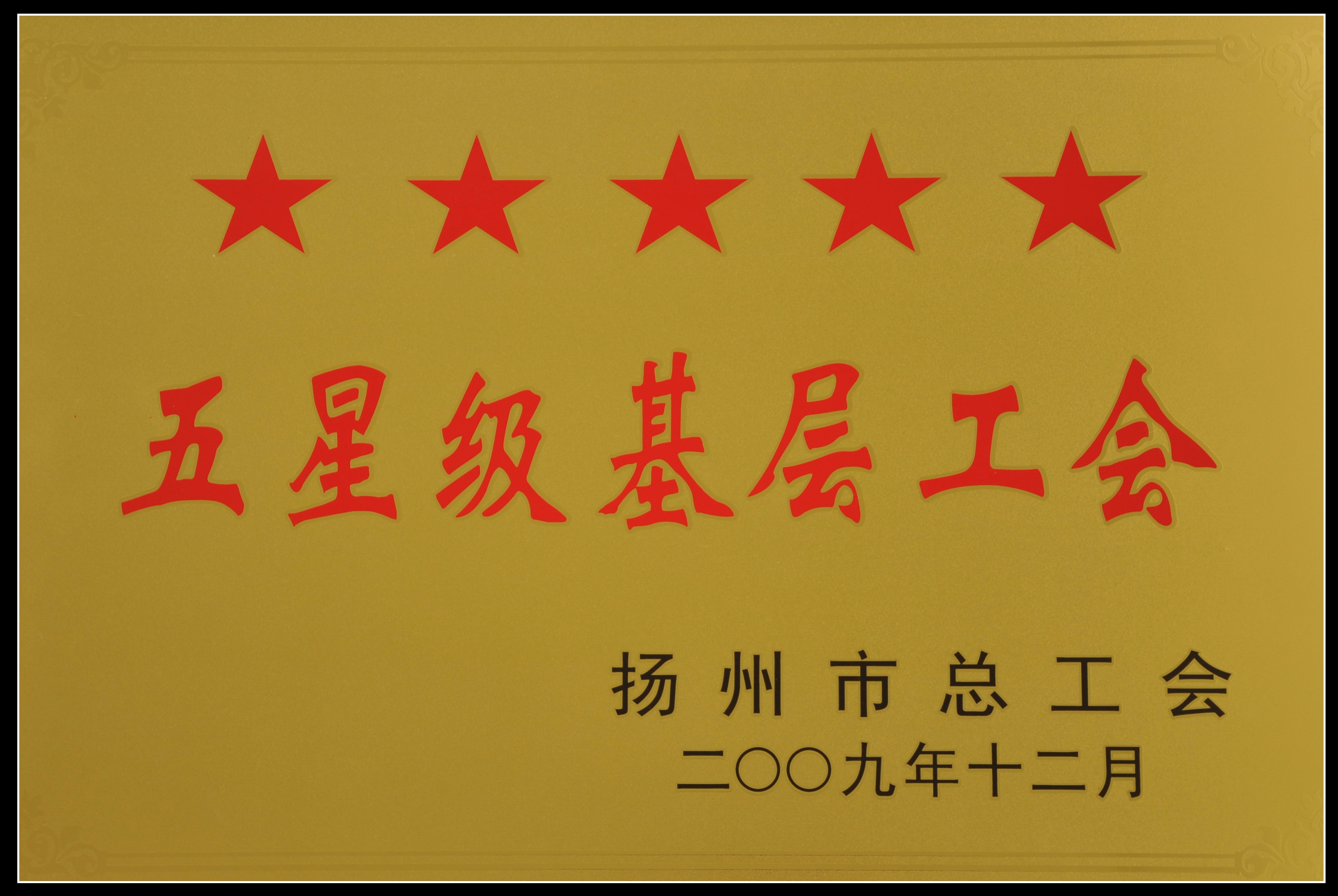 集團(tuán)公司工會(huì)被揚(yáng)州市總工會(huì)評(píng)為五星級(jí)基層工會(huì)