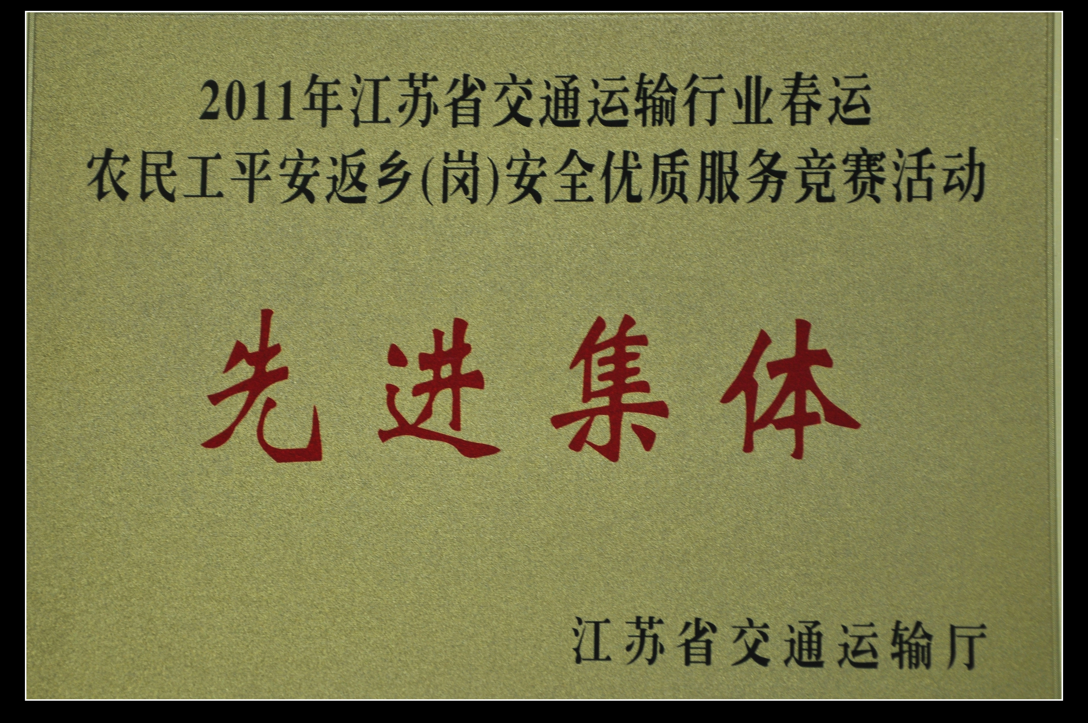 集團公司獲2011年江蘇省交通運輸行業(yè)春運農(nóng)民工平安返鄉(xiāng)(崗)安全優(yōu)質(zhì)服務(wù)競賽活動先