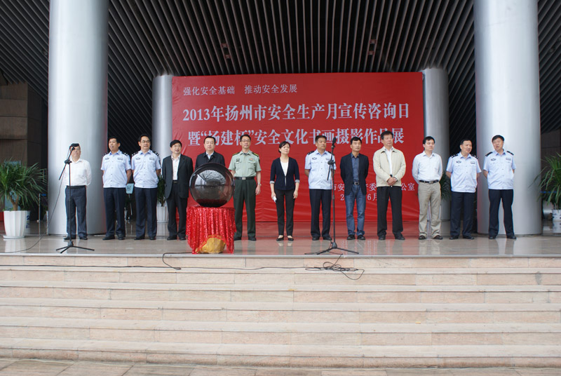 6月9日上午,2013年揚州市“安全生產(chǎn)月”宣傳咨詢日暨“揚建杯”安全文化書畫攝影作品展在市美術館北門廣場舉辦。副市長張寶娟出席了當天的活動,并和廣大市民一同參觀安全文化書畫攝影作品。市安監(jiān)局、交通局、公安局、建設局、氣象局、質監(jiān)局等單位領導,以及部分駐揚單位職工代表,共計400余人參加了活動。