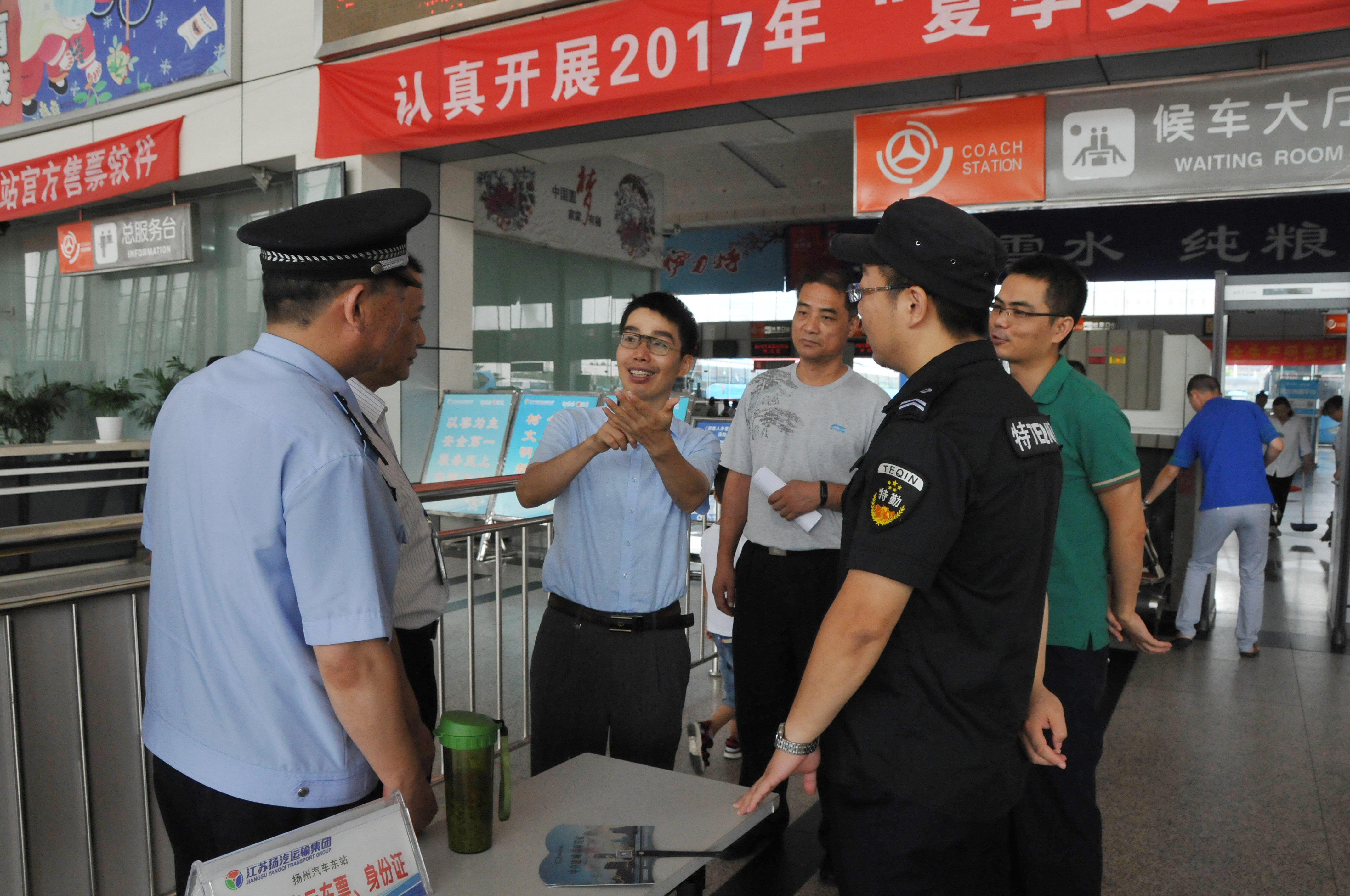 8月3日上午,省運管局和省公安廳組成的聯(lián)合檢查組,在省運管局副局長李云飛帶領(lǐng)下,對東站和揚州站的安全工作進行檢查。揚州市運管處黨總支書記徐才祥及相關(guān)人員陪同。檢查組深入東、西兩站的生產(chǎn)工作現(xiàn)場,重點針對實名制購票、三不進站六不出站進行檢查。檢查組還抽查了多輛班車,對班車的安全錘、安全帶配置,安全短片播放設(shè)備等逐一檢查,并對車輛駕駛員進行詢問,了解駕駛?cè)藛T對崗位安全工作流程的掌握情況。