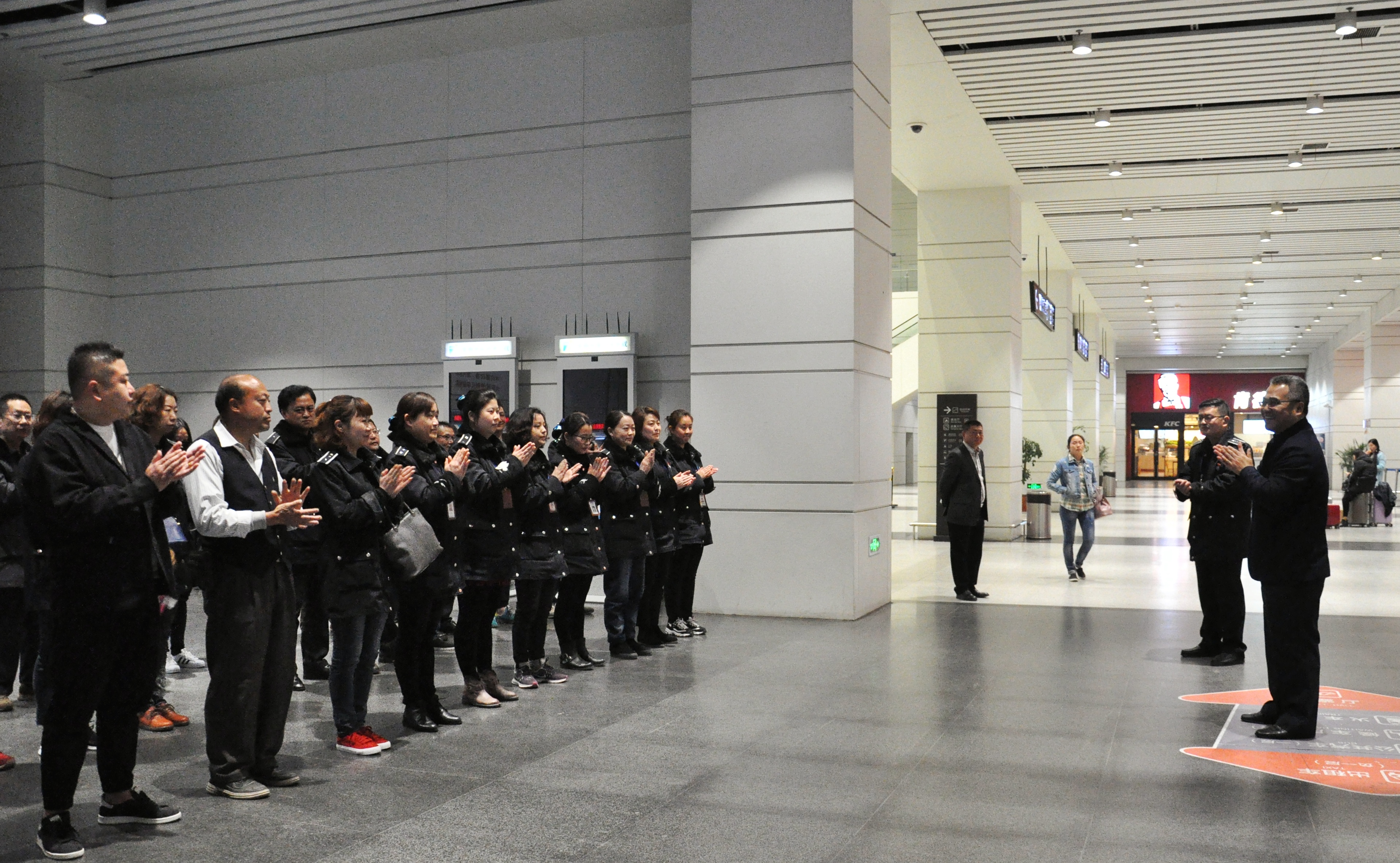晨會制度是揚(yáng)州汽車站多年來一直堅(jiān)持執(zhí)行的一項(xiàng)制度, 3月29日上午5時50分,交通產(chǎn)業(yè)集團(tuán)副總經(jīng)理、揚(yáng)汽集團(tuán)總經(jīng)理、黨委書記曹遠(yuǎn)志準(zhǔn)時出現(xiàn)在揚(yáng)州站晨會現(xiàn)場,和揚(yáng)州站干部職工一起開晨會。