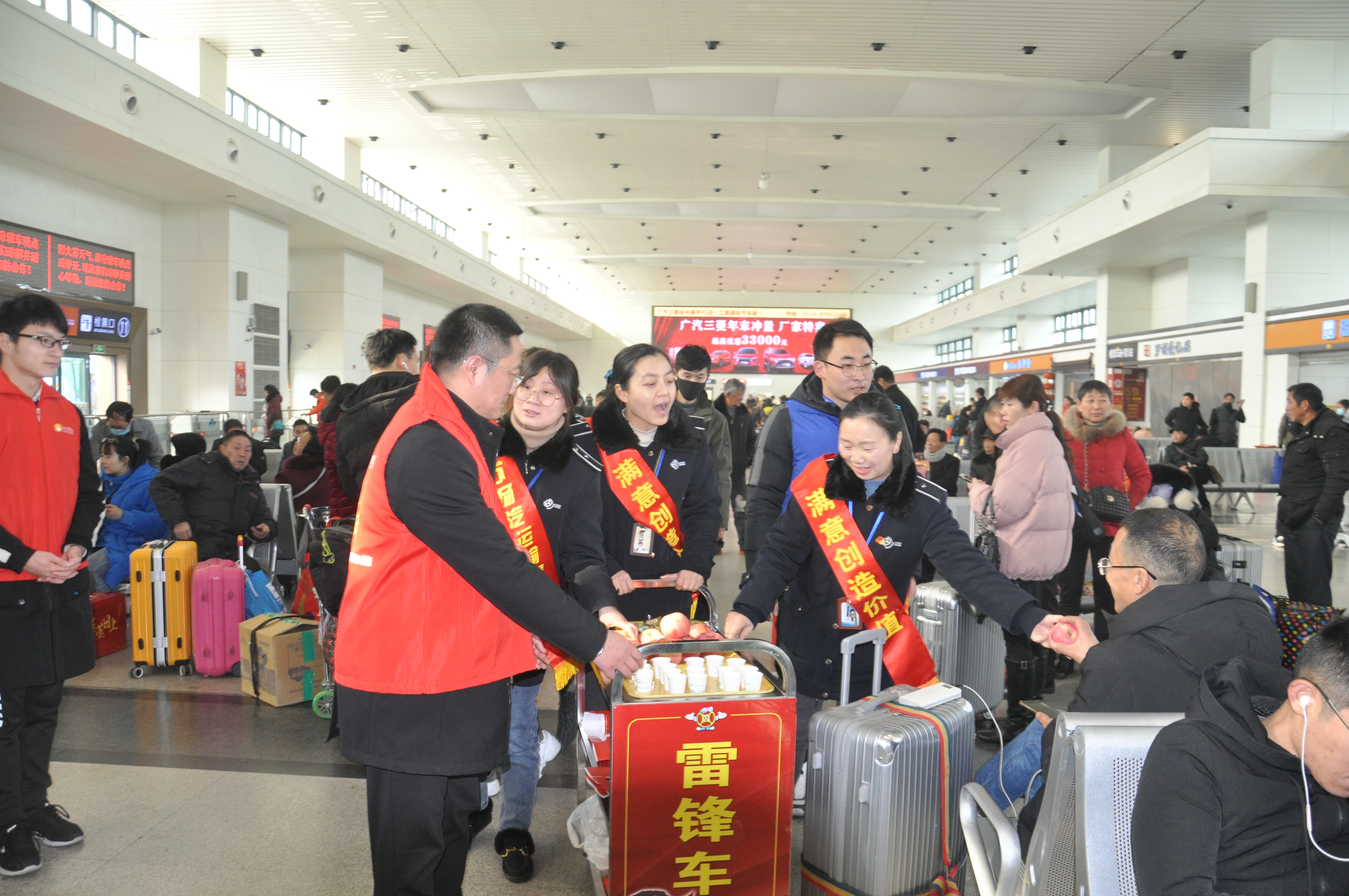 在揚州汽車站的候車大廳里,我們揚汽的志愿者們也在忙碌著,為歸鄉(xiāng)的務(wù)工人員送上了熱飲和湯圓送到讓旅客們在寒冬里感受著家的溫暖。歸鄉(xiāng)的務(wù)工人員背著行囊,手中拿著福袋,在揚汽志愿者的幫助下順利到達了檢票口并登上了回家的大巴。“情滿旅途、溫馨相伴”,我們揚汽的每一位職工將一直守護著民工朋友的歸途。