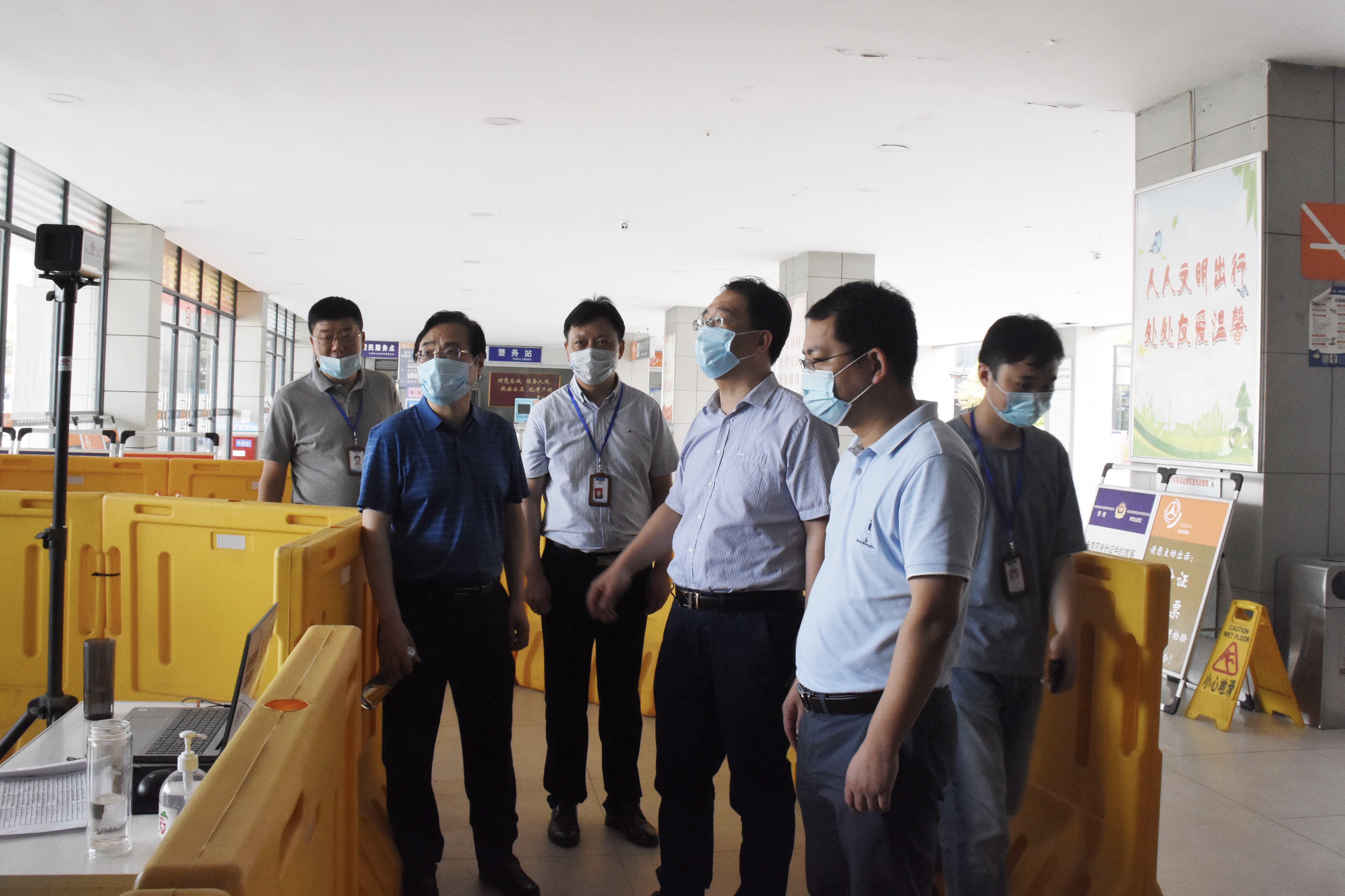 按照當(dāng)前市紀(jì)委監(jiān)委重點(diǎn)監(jiān)督工作要求,6月4日上午,交通產(chǎn)業(yè)集團(tuán)紀(jì)委書記、監(jiān)察專員方震帶隊(duì)到江都汽車站、西部客運(yùn)樞紐檢查公共場(chǎng)所疫情常態(tài)化防控措施的落實(shí)情況,實(shí)地督導(dǎo)疫情防控和復(fù)工復(fù)產(chǎn)工作。交通產(chǎn)業(yè)集團(tuán)副總經(jīng)理、揚(yáng)汽集團(tuán)董事長(zhǎng)、黨委書記龔宇峰等領(lǐng)導(dǎo)陪同檢查。