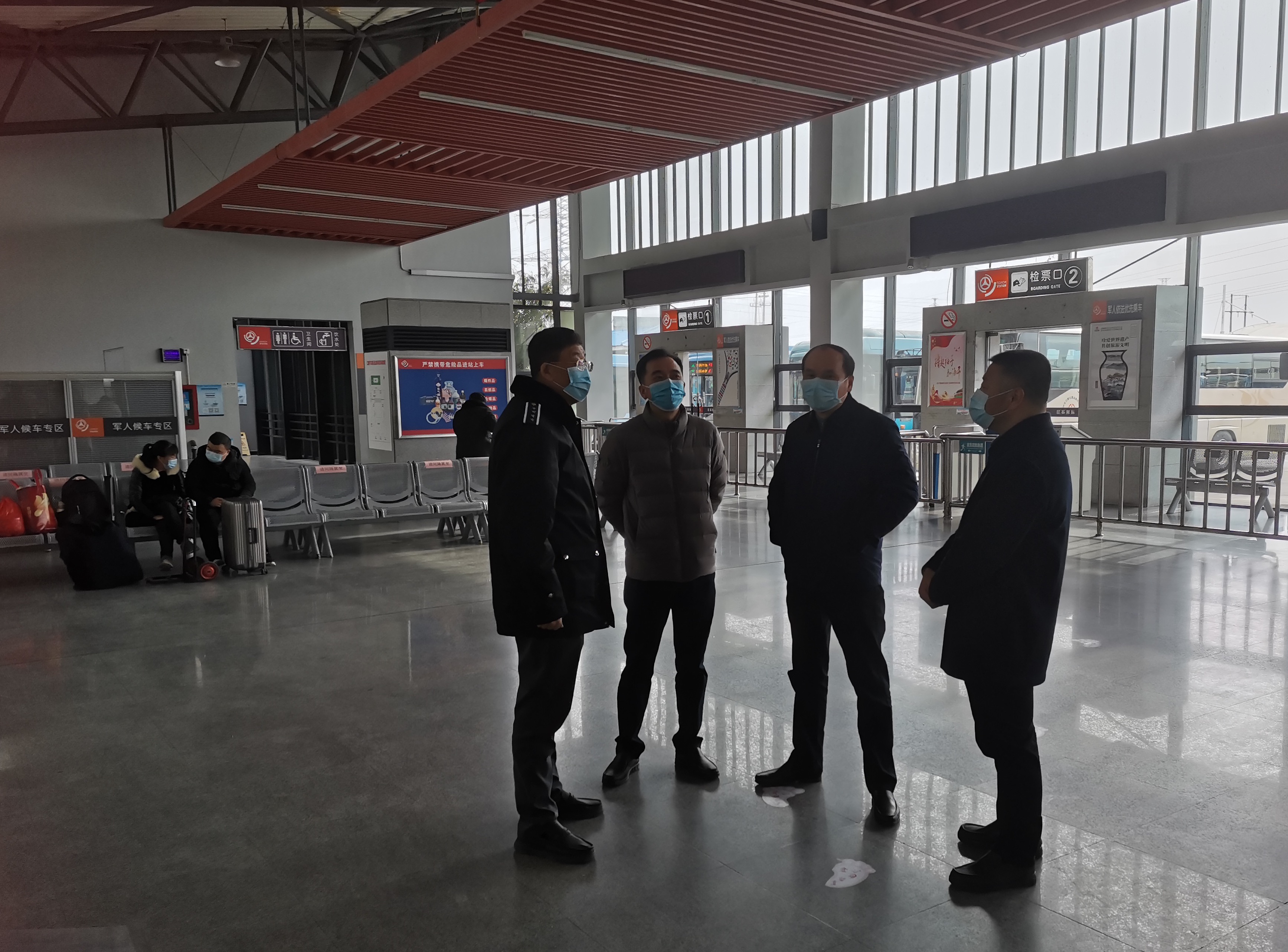 李健一行聽取了江都汽車站負責人春運期間的疫情防疫措施和安全管理工作措施匯報,并詳細了解了春節(jié)期間的車站客流數(shù)量、每日的發(fā)班班次等情況。