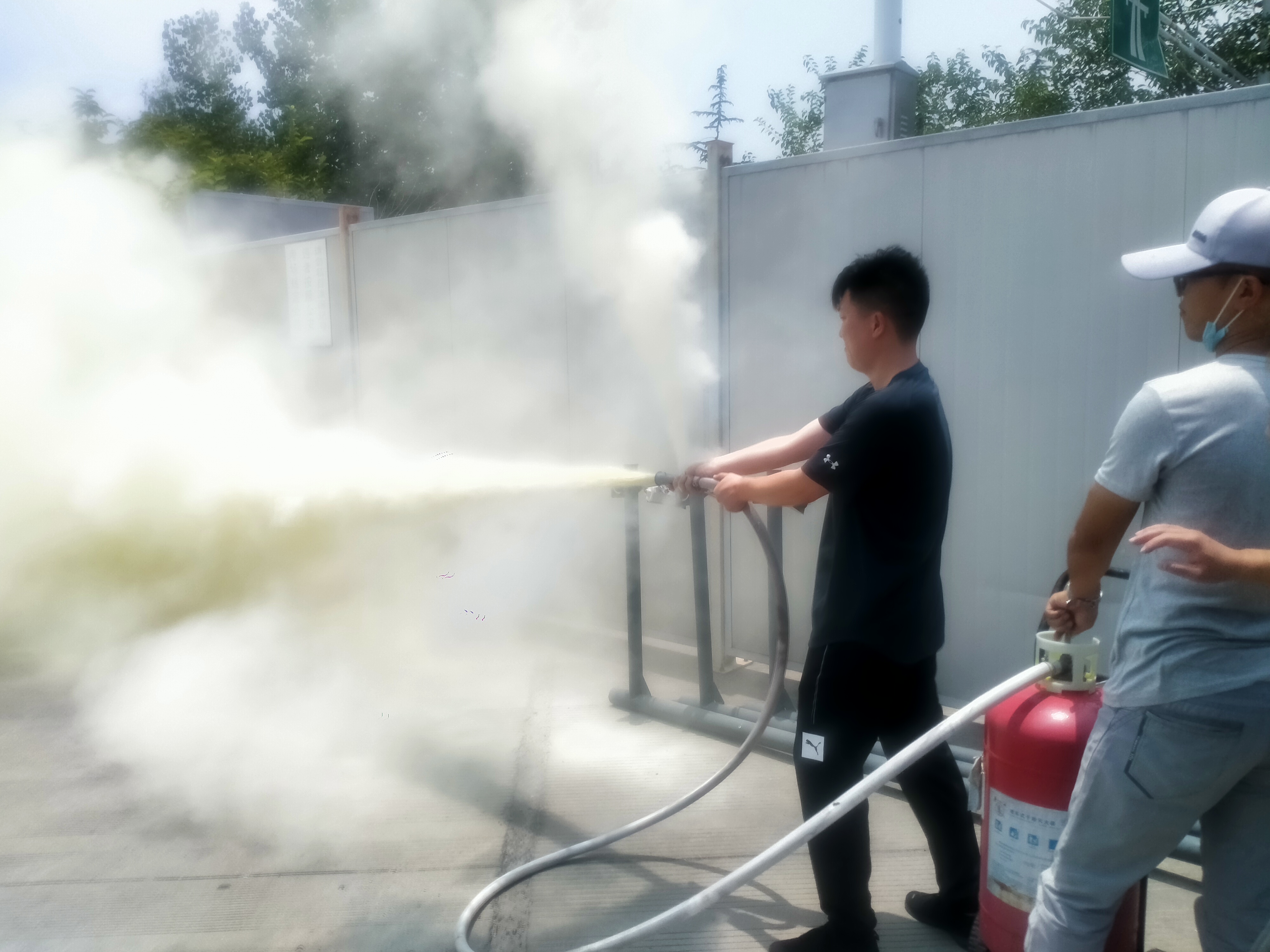 此次演練為強(qiáng)化場地消防安全,做好隨時(shí)處置場地火情的準(zhǔn)備,特別準(zhǔn)備了一具35KG手推式滅火器進(jìn)行現(xiàn)場演示。隨后,在工作人員的統(tǒng)一指導(dǎo)下,參演人員紛紛體驗(yàn)了滅火器的實(shí)際操作以及如何引導(dǎo)場地人員疏散,切實(shí)增強(qiáng)了員工的應(yīng)急技能。