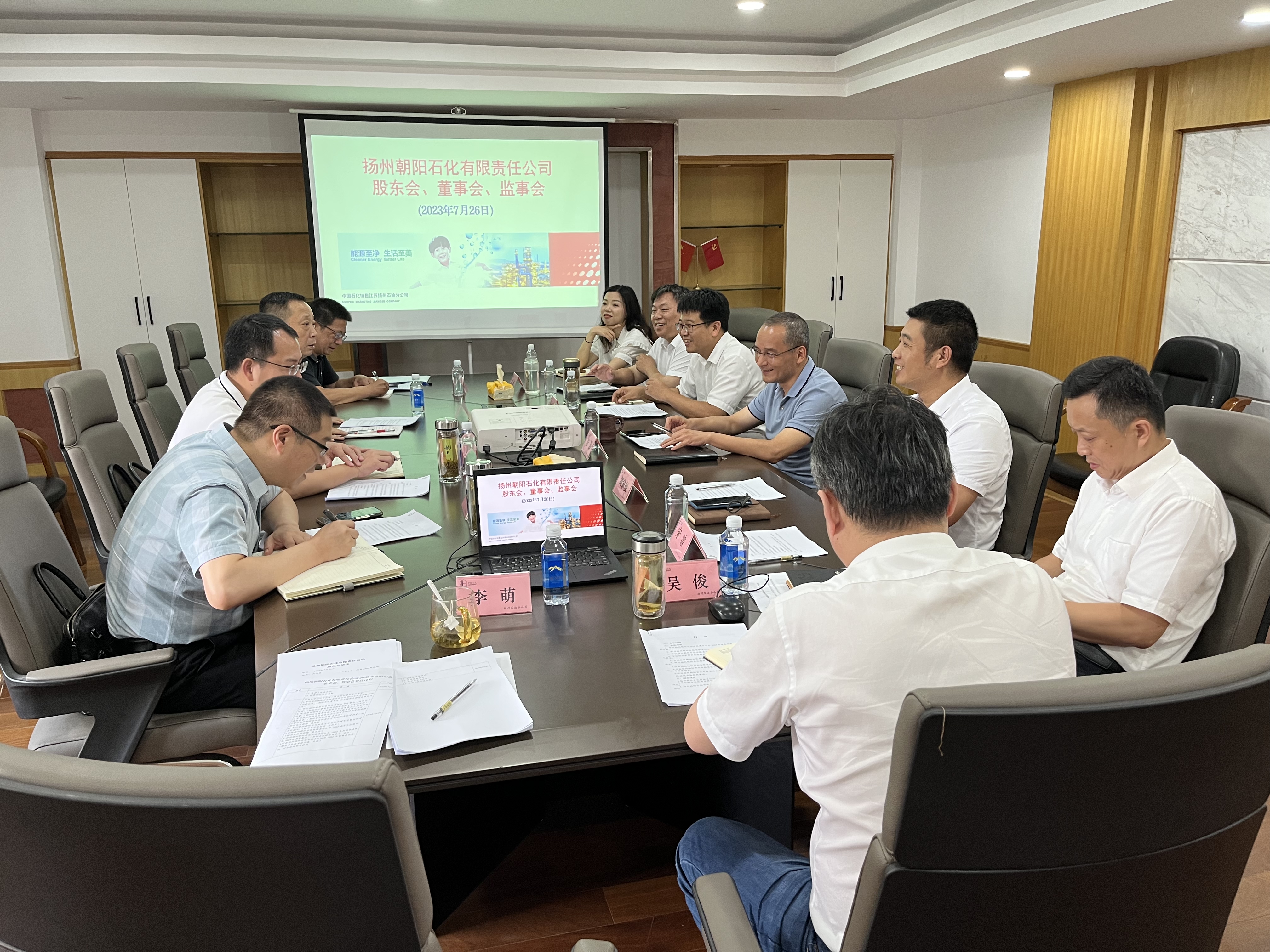 7月26日,揚州朝陽石化有限責任公司及其股東單位中石化江蘇揚州石油分公司、揚汽集團在中石化江蘇揚州石油分公司313會議室召開了揚州朝陽石化有限責任公司2023年度股東會、董事會、監(jiān)事會。其股東方代表市交通產(chǎn)業(yè)集團副總經(jīng)理、揚汽集團黨委書記、董事長龔宇峰,揚汽集團副總經(jīng)理孫華出席會議。