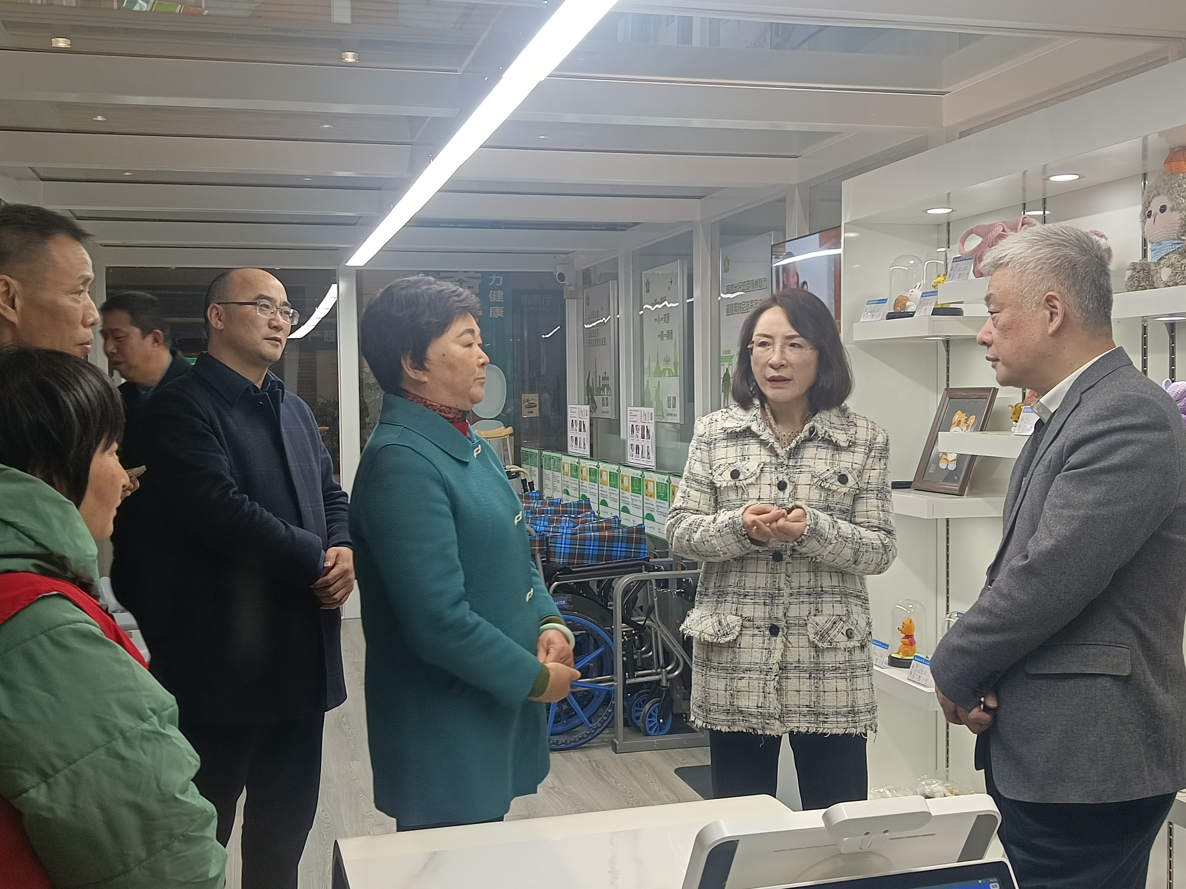 杜曉鎮(zhèn)一行實(shí)地查看了無(wú)障礙服務(wù)驛站的建設(shè)情況,揚(yáng)汽集團(tuán)相關(guān)負(fù)責(zé)人就愛(ài)心“驛站”的相關(guān)基礎(chǔ)設(shè)施以及為有需求的殘疾人、老年人出行提供輪椅、手杖等器具租借服務(wù)情況作了詳細(xì)介紹。