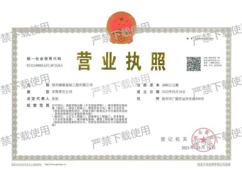 揚州捷能基礎工程有限公司完成企業(yè)登記